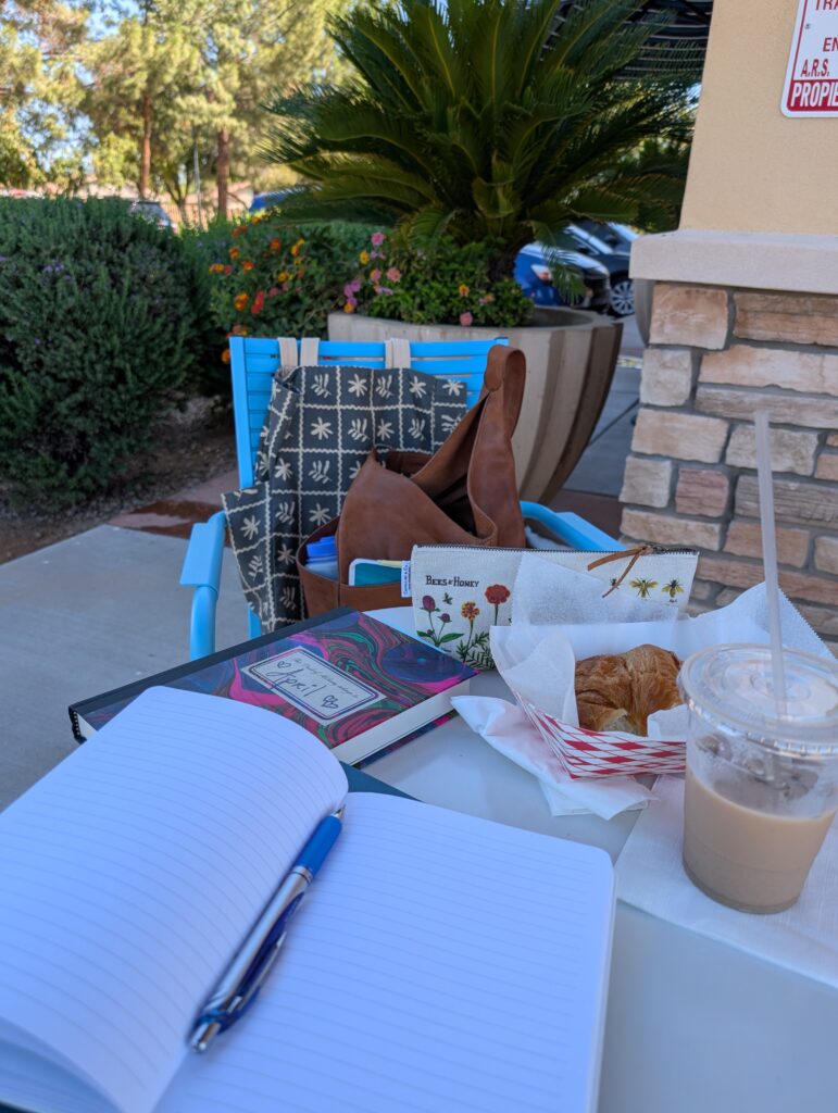 my delicious sandwich, chai latte, and writing notes – Oct. 3, 2025